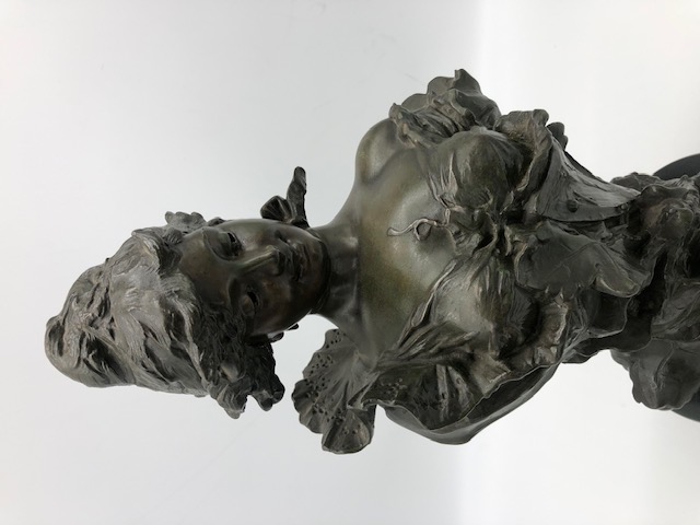 Fransız Art Nouveau Çift Tutya A. Ffuretay İmzalı Kadın Heykeli