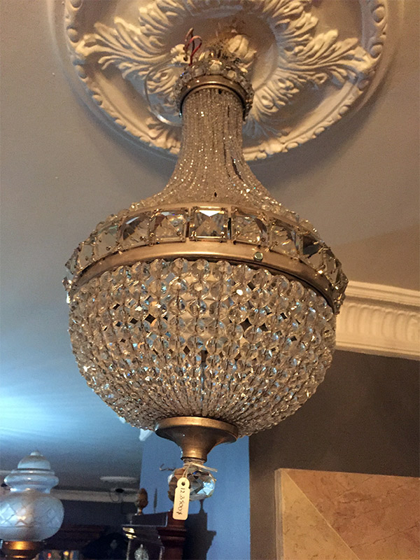 Fransız Porselenli Metalli Kristal Fanuslu Avize